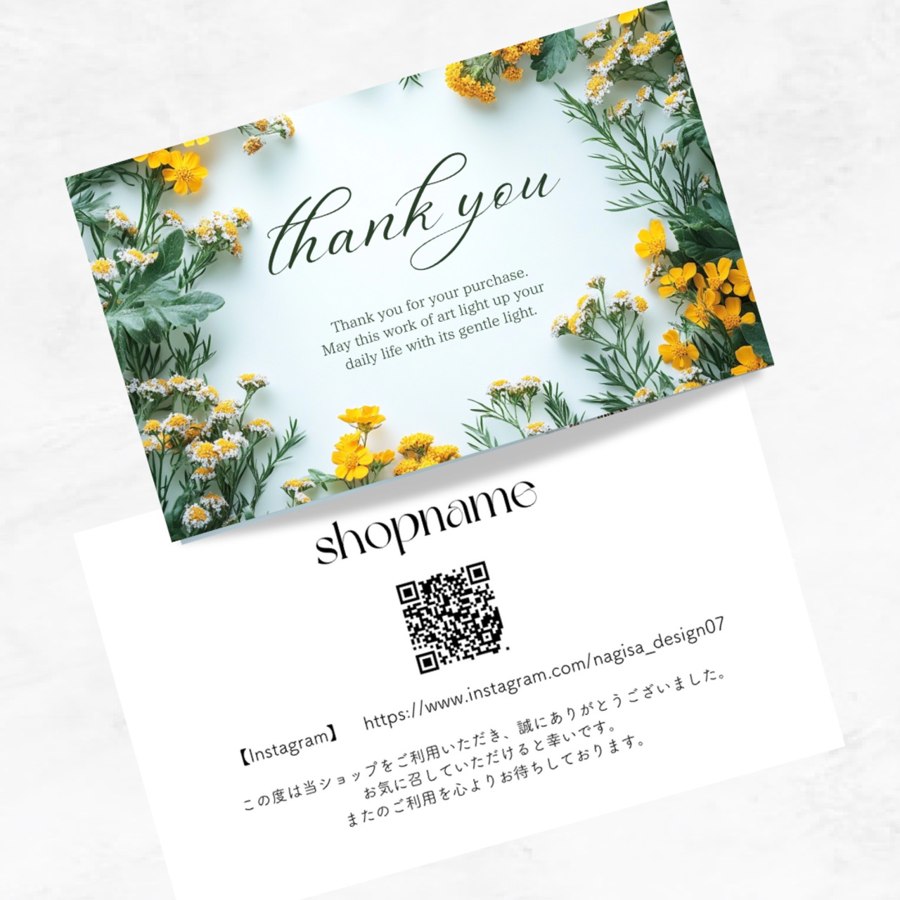 ナチュラルな花柄デザインのサンキューカードは、ハンドメイド作家さんやショップオーナー様のブランドイメージにやさしく寄り添います。