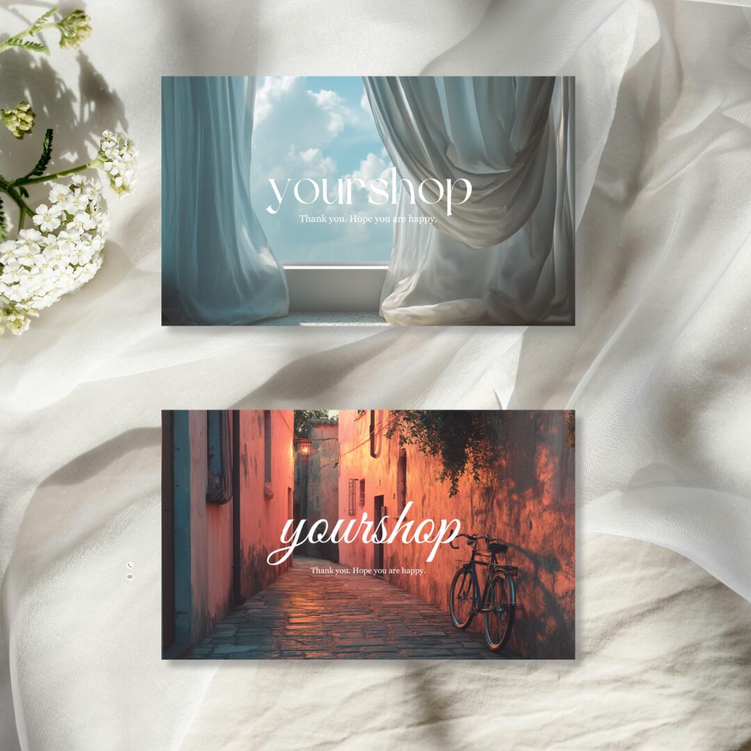 名刺サイズ(91×55mm)の、透明感と詩情をまとったショップカード・名刺です。