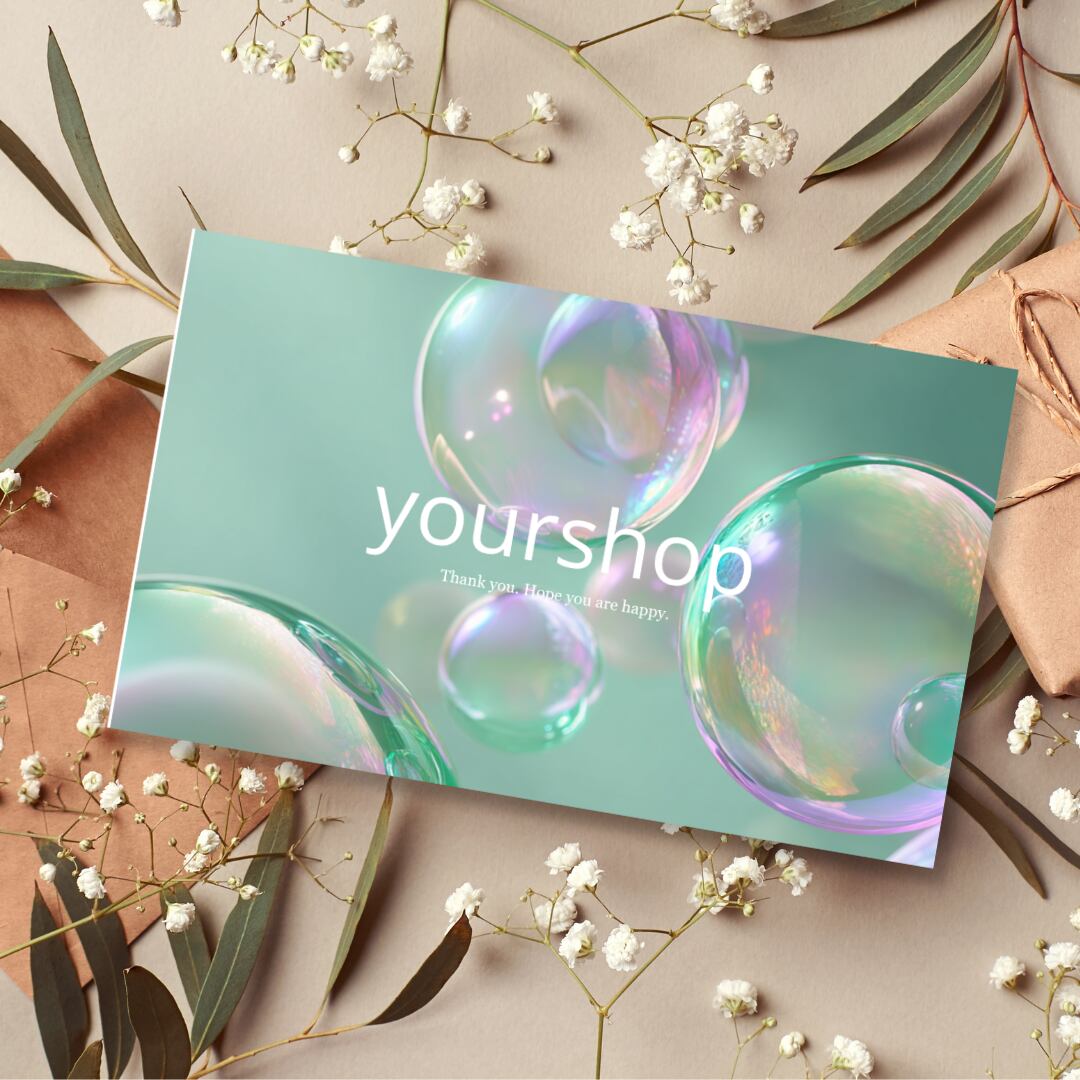 ふんわりと浮かぶシャボン玉のように、やさしい光と透明感を閉じ込めた名刺サイズのショップカードです。