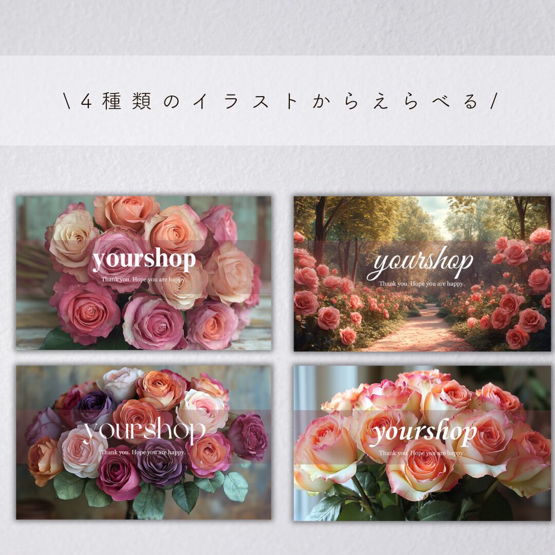 春を感じさせるバラをモチーフに、国内高品質印刷で繊細な美しさを再現した華やかなショップカード&名刺。