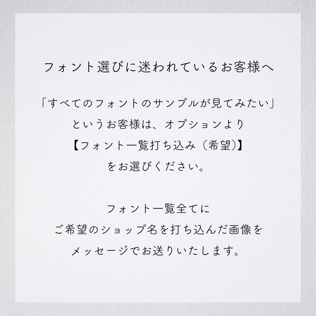 「すべてのフォントのサンプルが見てみたい」というお客様は、オプションより【フォント一覧打ち込み(希望)】をお選びください。